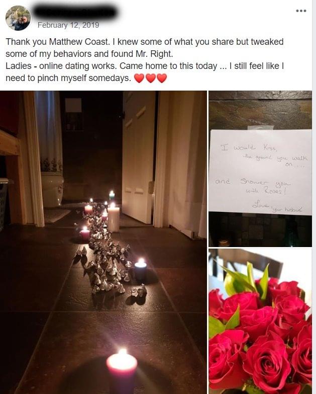 "I am now in a happy long term healthy relationship thanks to Matt. I spent so much time dating focusing on my outside personality that I failed to connect on a real level.